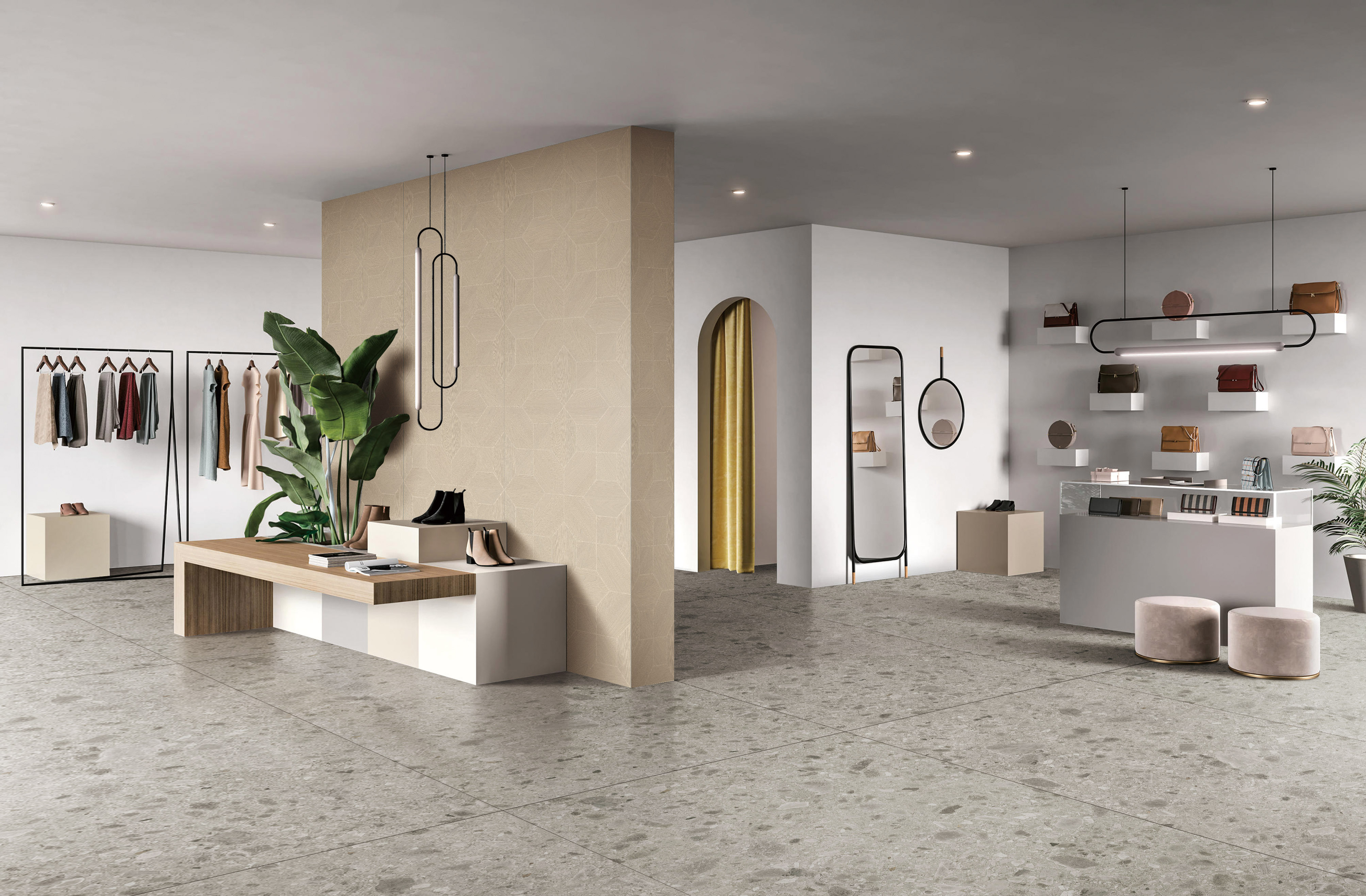 榆木紋理與幾何元素碰撞設(shè)計,在杏色基調(diào)中被展現(xiàn)地淋漓盡致,將紋理的蔓延作為空間脈絡(luò),貫穿于不同場域,藝術(shù)的加持在簡約平和的設(shè)計中,透露出田園牧歌式的寧靜悠然滿足人們對木與生俱來的情懷。