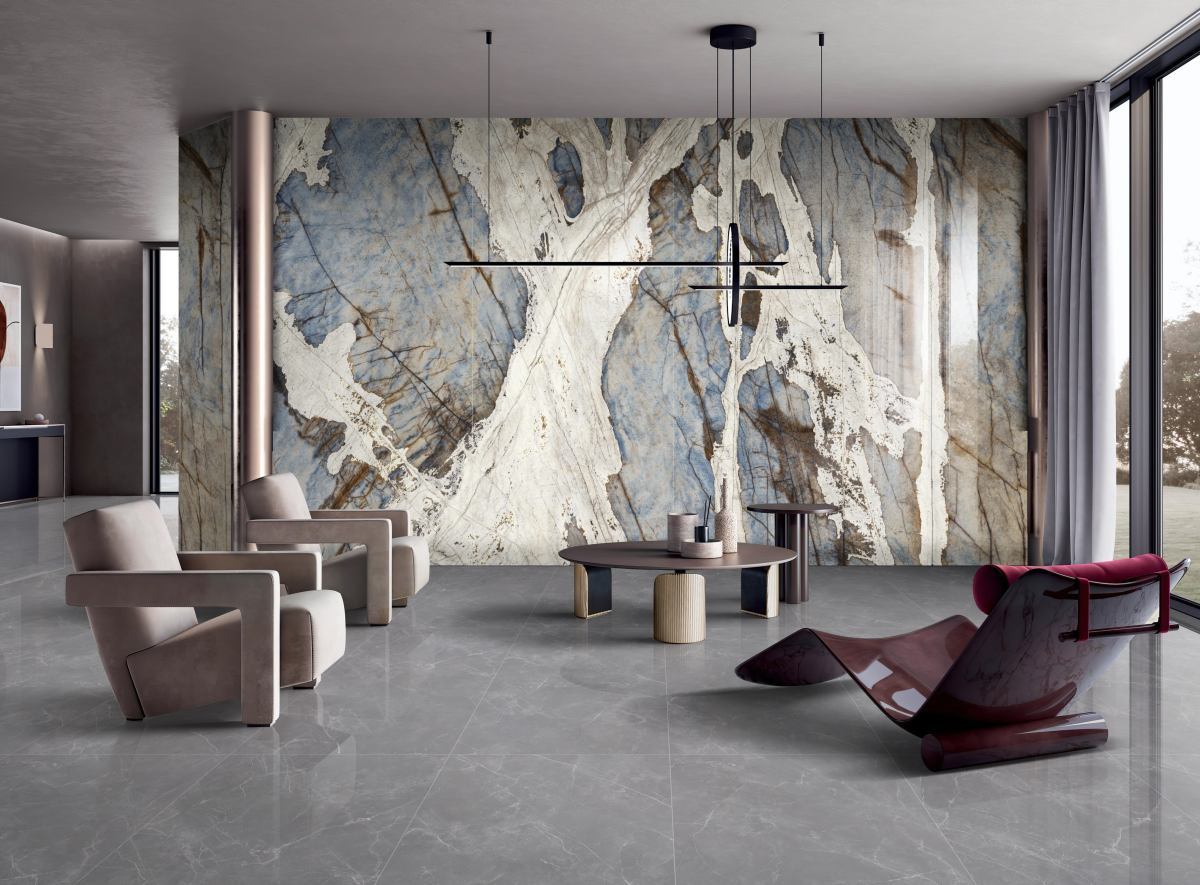 以淺灰色為基調,色彩淡雅,質感溫潤質樸,行云流水般的紋理明暗相融,空間柔和具有張力,高雅的氣質更是現代簡約生活的追求。