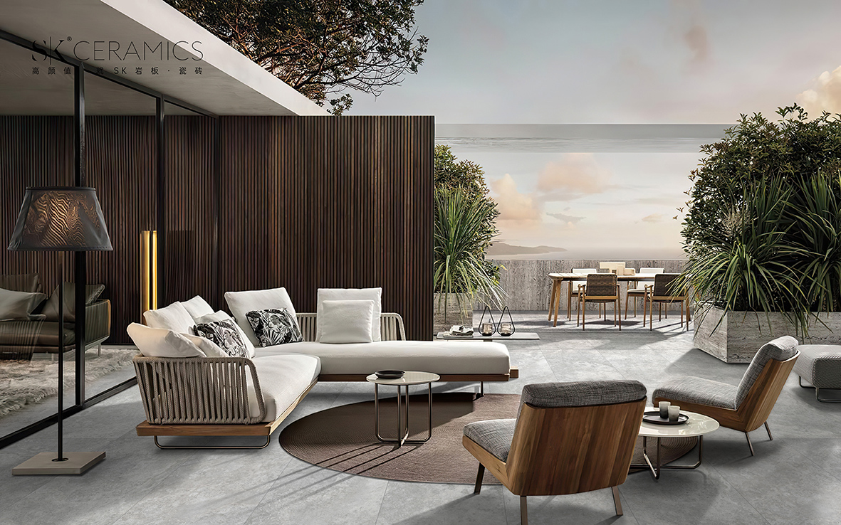 色彩:淺灰色基底+洞石紋理